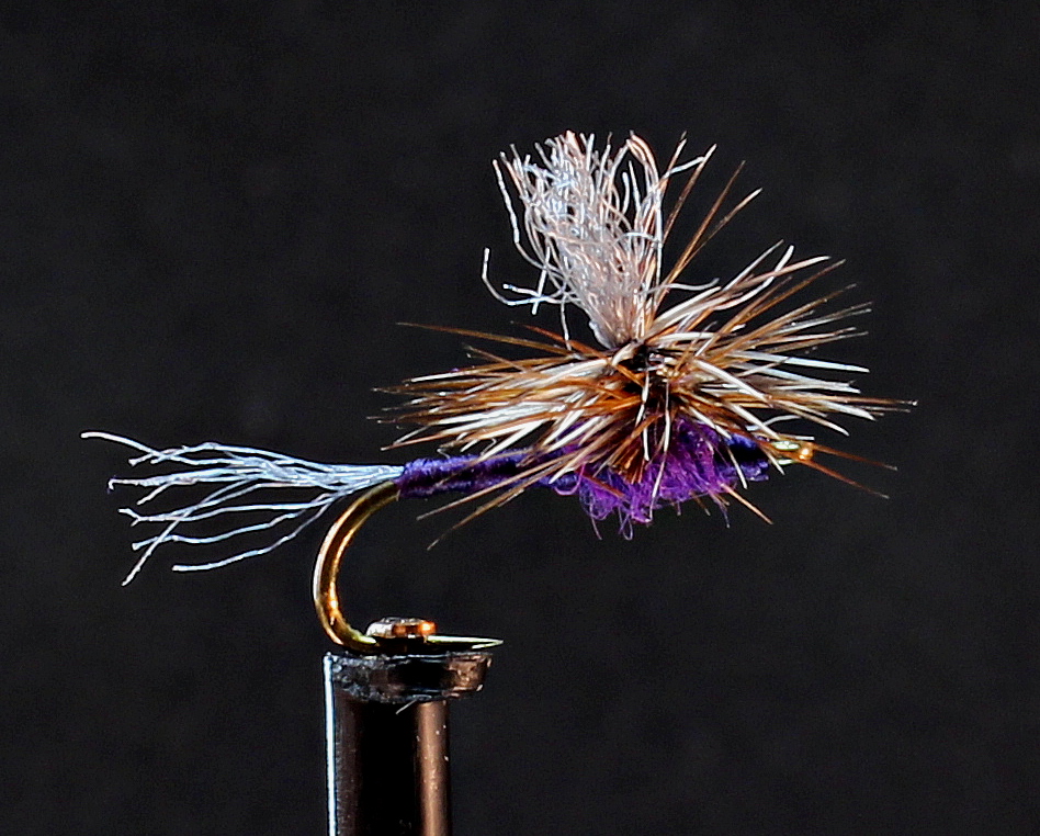 Cleaned up the tying bench/table today and decided to tie up something purple. I ran into someone up near the turn-off going up the mountain. We chatted a bit and shared that purple was a color the Brookies up there seemed to have liked.