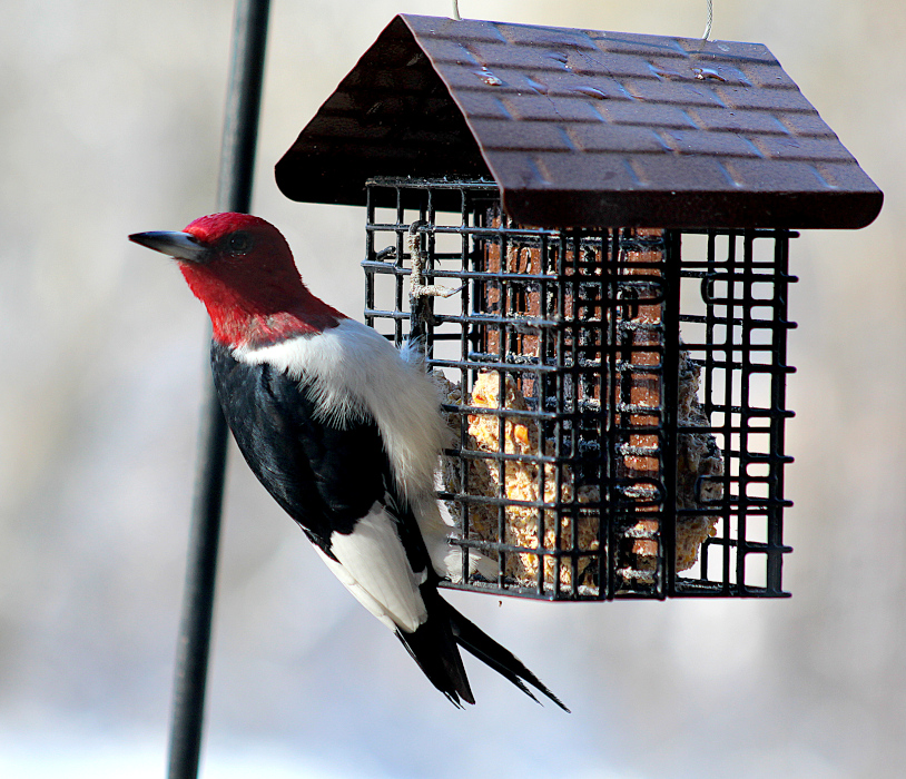 Last week I saw 3 Red-Headed Woodpeckers here feeding at once. I thought I was fortunate in seeing 2 here together a couple of months ago. One was distinctly a juvenile, one an adult (or at least in full color). I hope I get to see them this Summer.