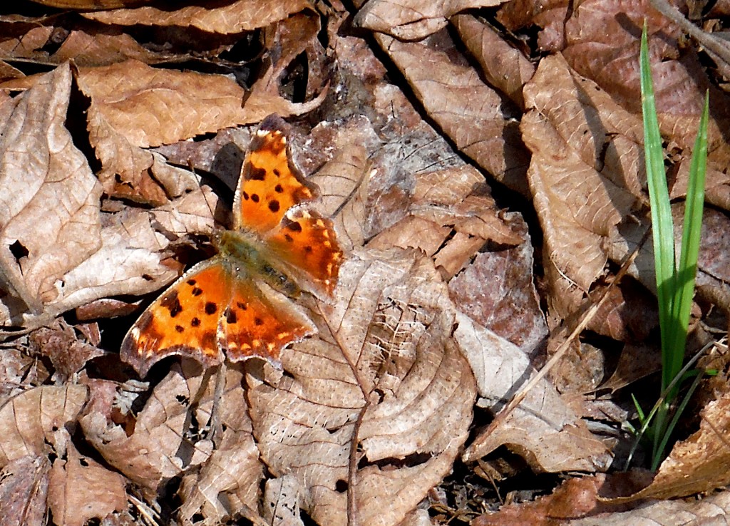 This guy (or gal) was kind enough to allow my to take it’s picture before fluttering off to who knows where. (Googled – is it a Question Mark butterfly??)