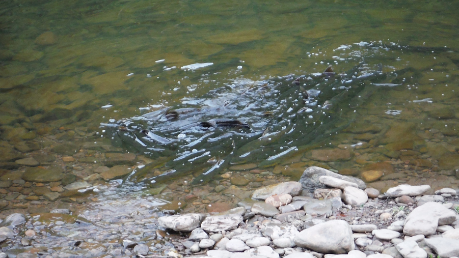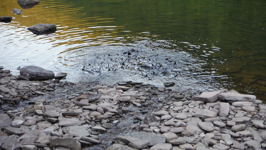 Wherever there is a cold water run out of the mountains, the BTC fish seek its oxygenated waters. There’s a few places along the stretch where fish are congregating like this.