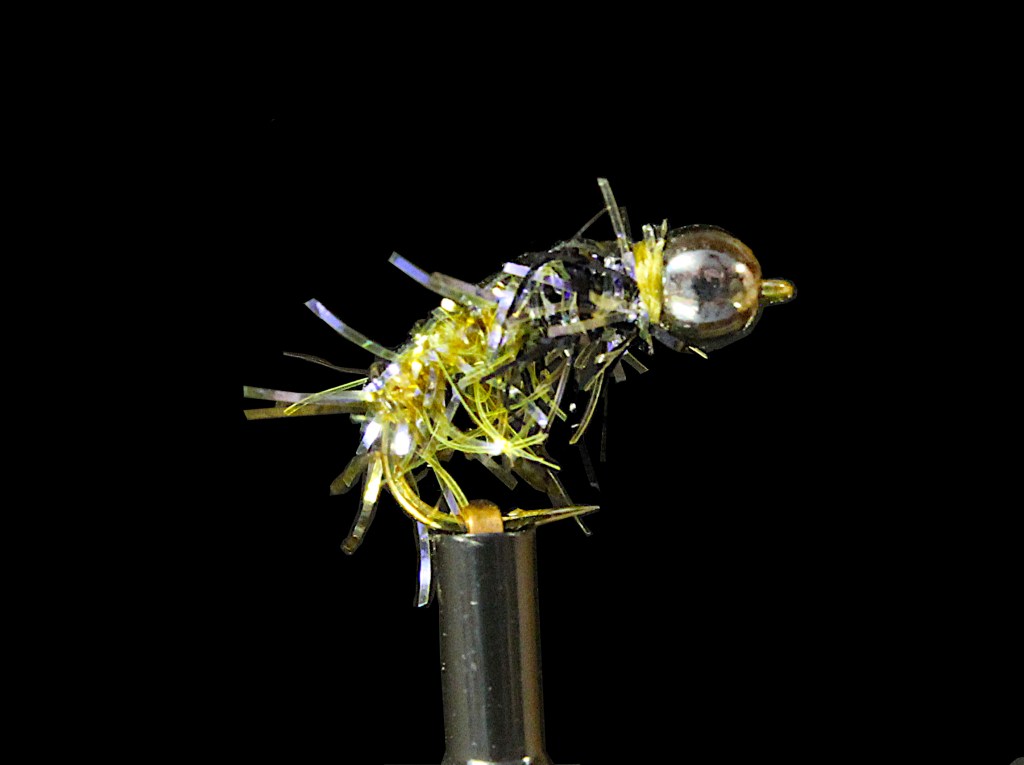 I think this might have been the second one I tied. I can tell by comparing it to what I saw on the video, that I need to make the casing/shell back wider. It’s not obvious in this picture but the casing is there and I lash it down with mono. I believe I use 0.009″ mono and that is indeed micro chenille. Not sure if it’s the UV classified stuff or not but I’ll tie each version and see if there’s any difference in response to it. I just happened to use a lighter colored thread on this tie. I’m trying to decide if I want to color code the specimens I tie in these sessions. Different color thread could then differentiate between lighter and heavier versions. Adding flattened lead to the thorax area would make those quite heavy which I suppose could be fished in Pine with that much weight. But, I might be able to get away with just the tungsten bead-head for offering these up the runs.