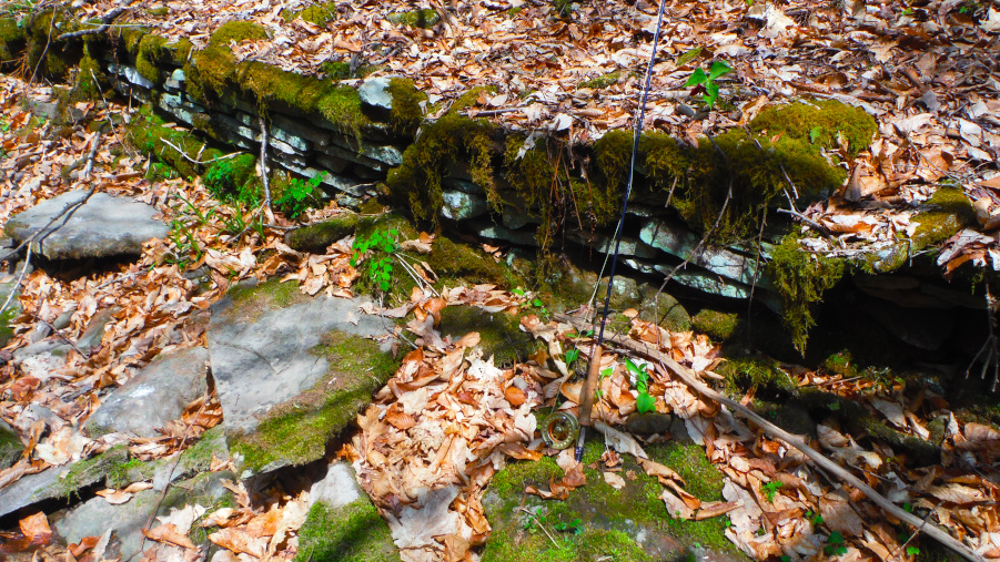 I was lucky enough to fool one fish. The surfacing fish started to diminish but I continued to cast to where there once were rising trout. They stopped rising. A couple from ‘The Neighbor’s’ place (I think) start fishing above me. I decide to wade back to shore. A couple of raindrops strike me. I sit on my perch down from my place and it starts to rain. It rains enough for me to call it quits. It rains in earnest during the day several times. The gauge reacts and I am tankful for the increase in height.
