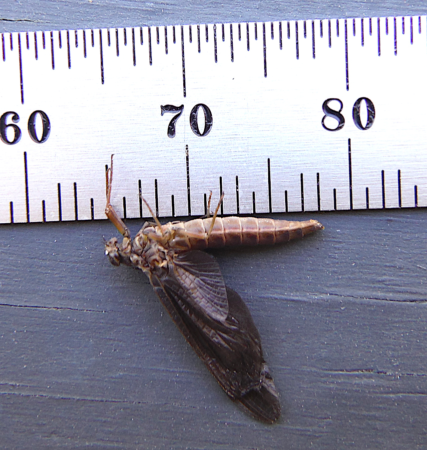 It must be mentioned that this fly came to me with tails missing and ‘The Neighbor’ said that was how he had found it. The previous pictures show the fly in as healthy a state as it ever was according to ‘The Neighbor’. I definitely mishandled/abused the fly to the point that I was able to lay it inline with the scale.