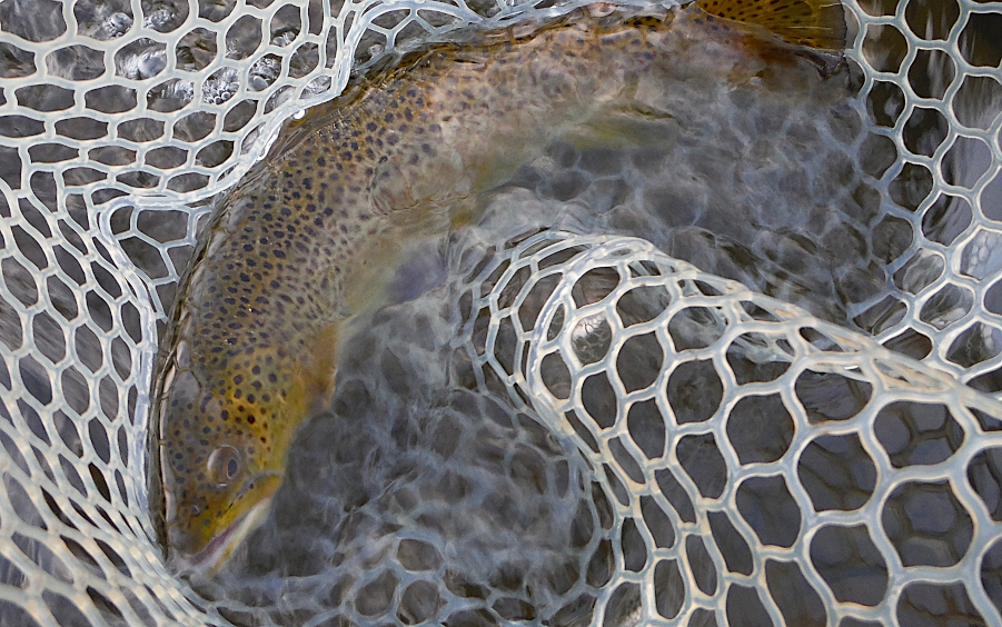 I would catch a couple on a Extended Body Coffin Fly that I tie and then I’d run into a fish that didn’t want anything to do with it! Eventually I decided to give the fish what THEY wanted and NOT what I THOUGHT they should be taking! This meant changing it up several times. I caught fish on Coffin Flies, a March Brown Extended Body, a March Brown (the MSS) Spinner, and even a Grey Fox emerger which I had tied several days ago. What a fish would take depended on whatever fancied the particular fish you ran into. The menu for the evening was large and varied – you had to figure out just what tastes this or that particular fish wanted! But when you figured it out…
