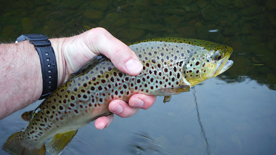 I stayed out on Pine till I couldn’t see the fly very well anymore – and then stayed a little longer and managed to catch that last fish before I called it quits. With this Green Drake Spinner fall I’m learning (I’ve heard of this in the past – just taking it more to heart now) – that the action happens just before dark. It certainly seemed that way Wednesday and Thursday evenings. Not all trout that were caught got their pictures taken and are thus not shown here. I believe this may have been the best evening I’ve had on Pine this year – so far (I hope).