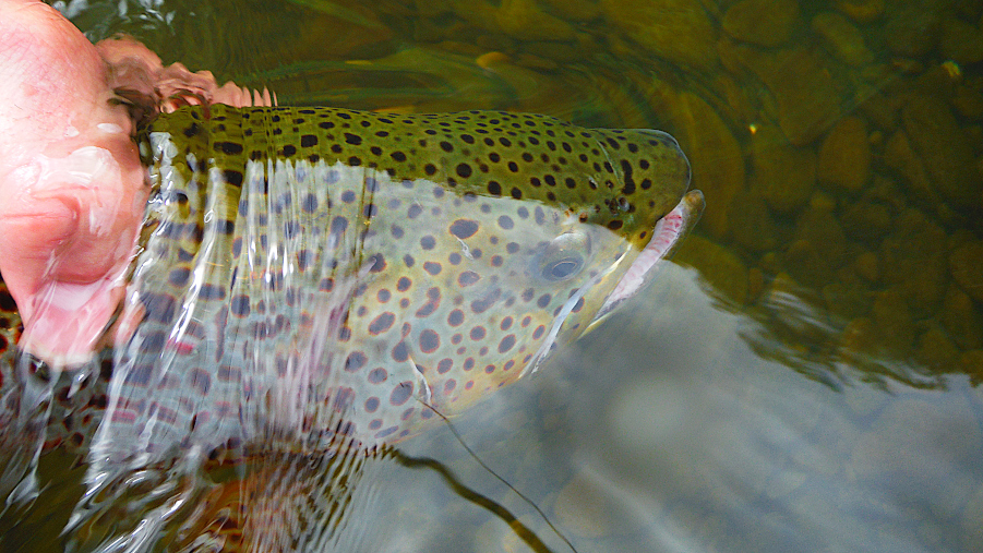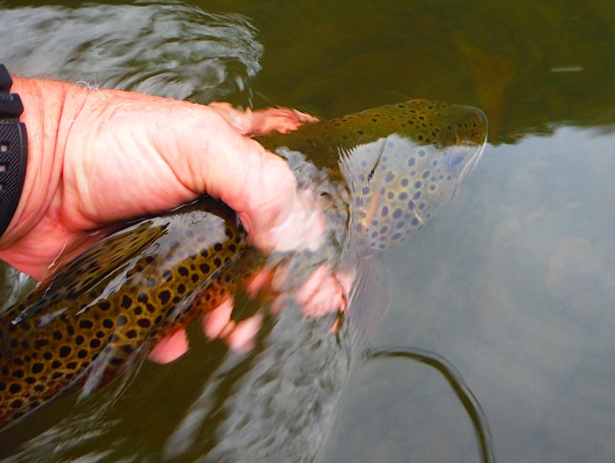 It might be a little difficult to compare the photos here, but I looked at the original high resolution images and the spotting on the trout’s cheek, in my opinion, match the fish I caught the evening before!