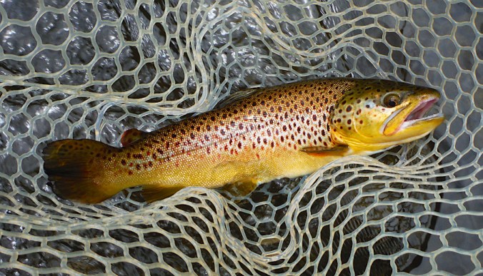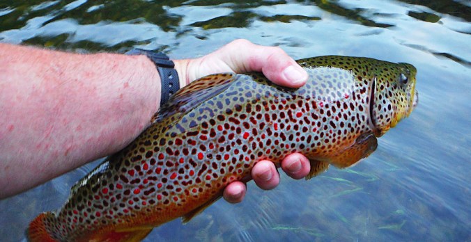 I hook into a nice fish – it’s Son Of Orange Trout – on consecutive days, with a different fly and in a different location than the evening before.