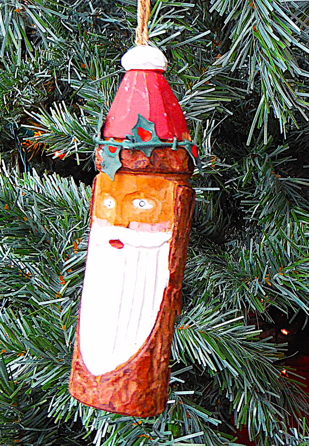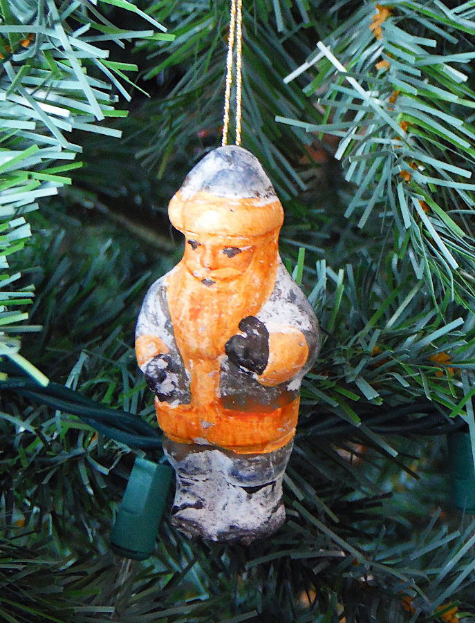 The one on the left had color on it until I got a hold of it in my early 20’s. I recall a light green ring alternating with a cream colored white before I rubbed the color off. The finish could be removed by just touching it as one would place it on the tree I recall. The pear – I remember it on the tree when I was growing up every year of my childhood. The green and white one on the right either came from home or was given to me from a deceased friend I had here in Michigan. Rest easy Floyd.