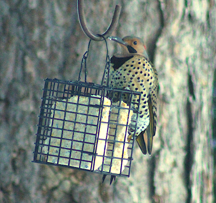 The Flicker’s been a regular this past winter. Not so much the past few winter’s but this one – he’s been a regular. This one seems to be a big specimen – appearing a little larger than some, if not most of the Red Breasted Woodpeckers I had here this year.