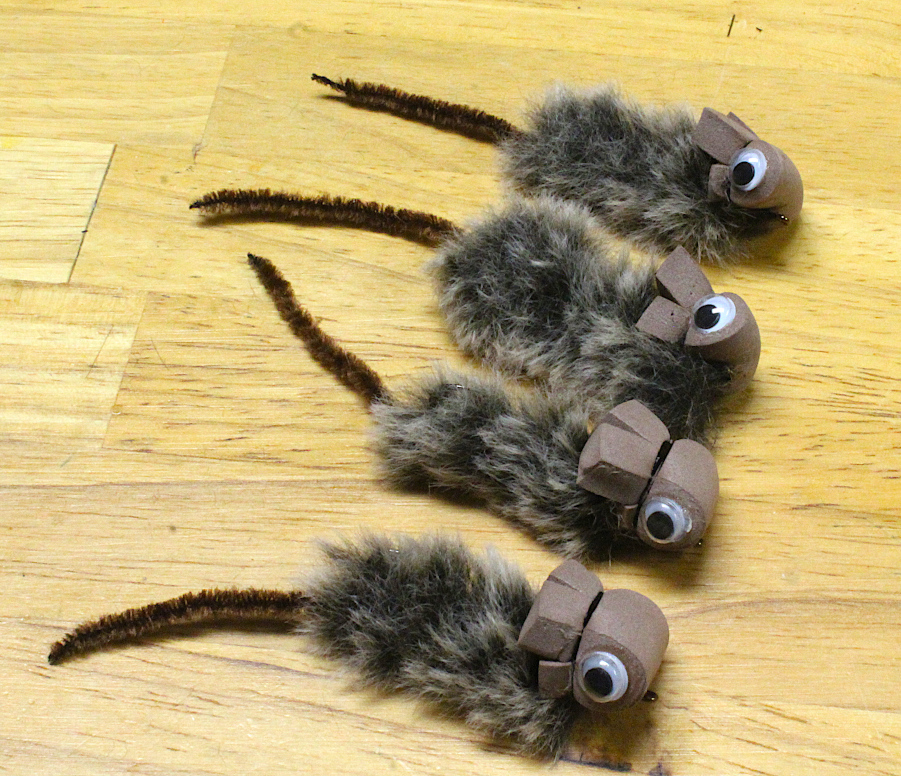 Once I got all the materials together I could start torturing the fingertips. But after all the stabs, pain and blood, the mouses (yes, intentional use of ‘mouses’) turned out like this.
