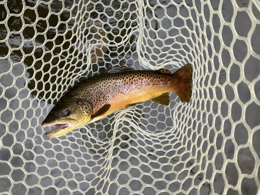 This Brown ran line out a few times before I brought it to net. With this fish and the large Rainbow I was thinking about the tippet and knot that held the fly onto it. Thankfully it held as planned.