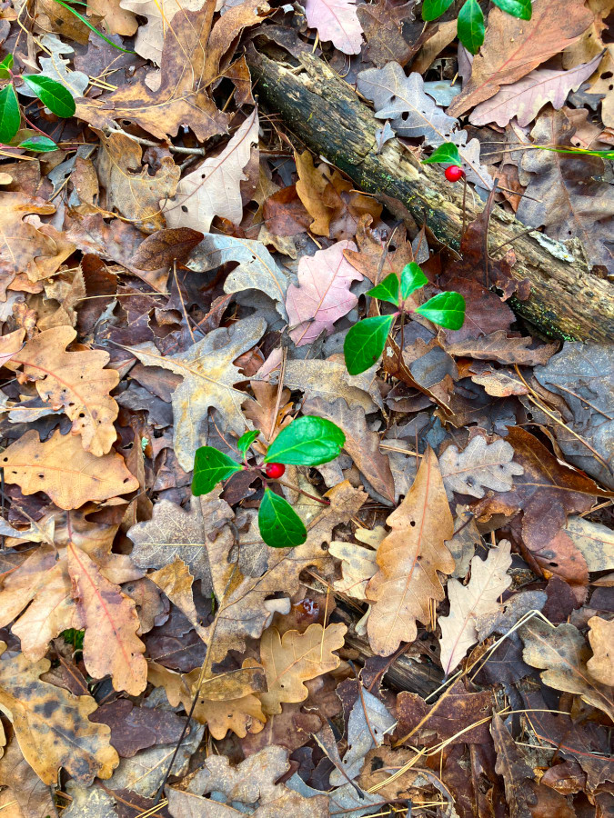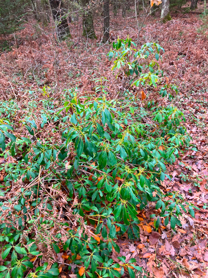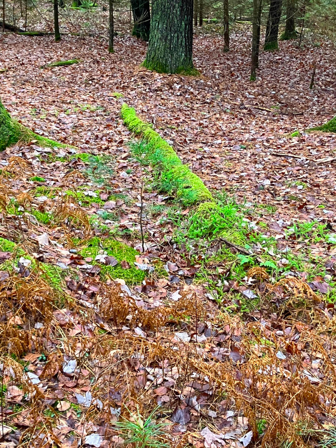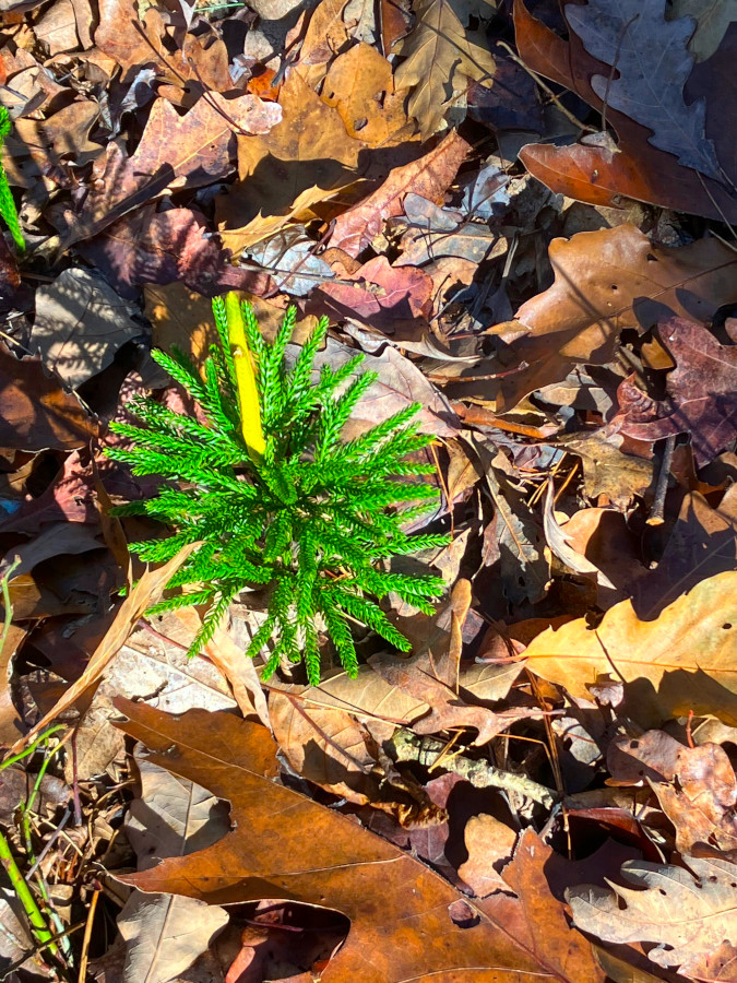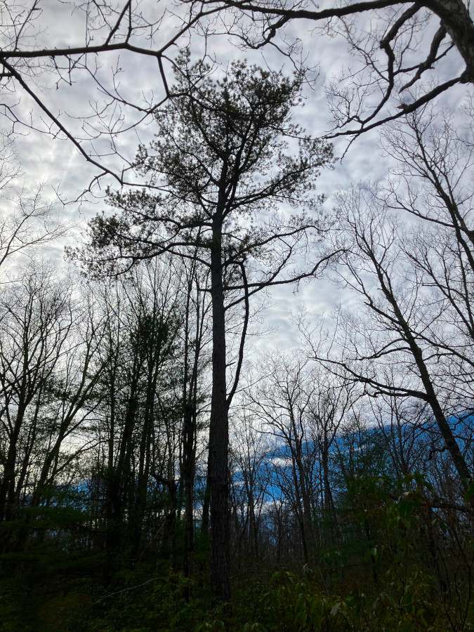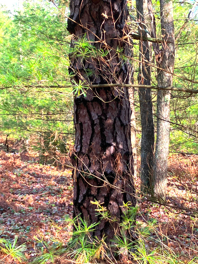 Saw a bunch of Wintergreen and Mountain laurel along the trail. The berries didn’t seem to have the distinctive aroma of Wintergreen, but the leaves, when crushed, did not disappoint! Our objective was an old homestead some distance back into the woods. Saw this distinct looking pine tree along the way.
