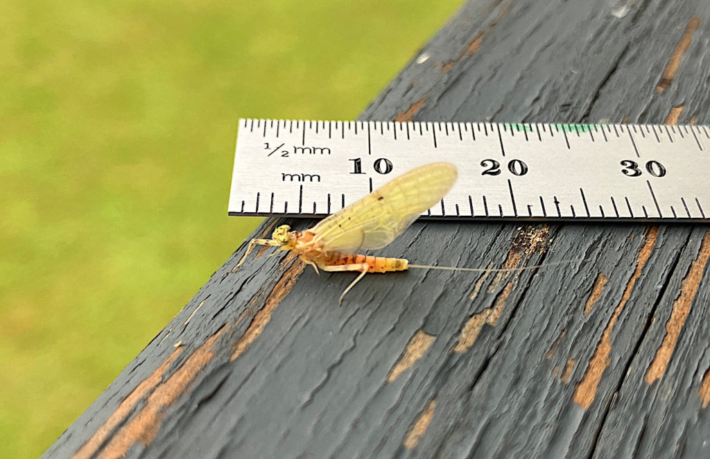 • First of all thanks for reaching back to us and commenting! I am pretty familiar with a Hex and I even had one here a couple of weeks ago. If I can find the pic I took, I’m not sure if I can post it in a reply to a comment but I’ll look into it (made a new post to share the pic). I took it’s picture here a week or so ago (of a different fly that was ID’d as a Hex) and damned if the ‘AI’ sort of stuff on the phone kicked in and it suggested it was a Hexigenia limbata. And looking at the picture suggested – it was! So I don’t think this is a hex – but like I said, thanks so much for the comment! The Hex I took a pic of was much bigger in size then this yellow drake (I think yellow drake). Thanks again! UB